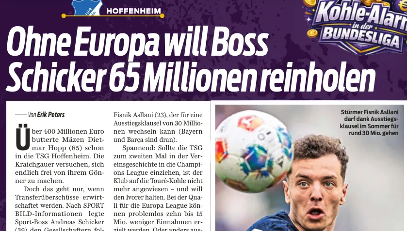 据《体育图片报》报道,体育总监安德烈亚斯-席克(39岁)向股东们提交了一份资金计划: